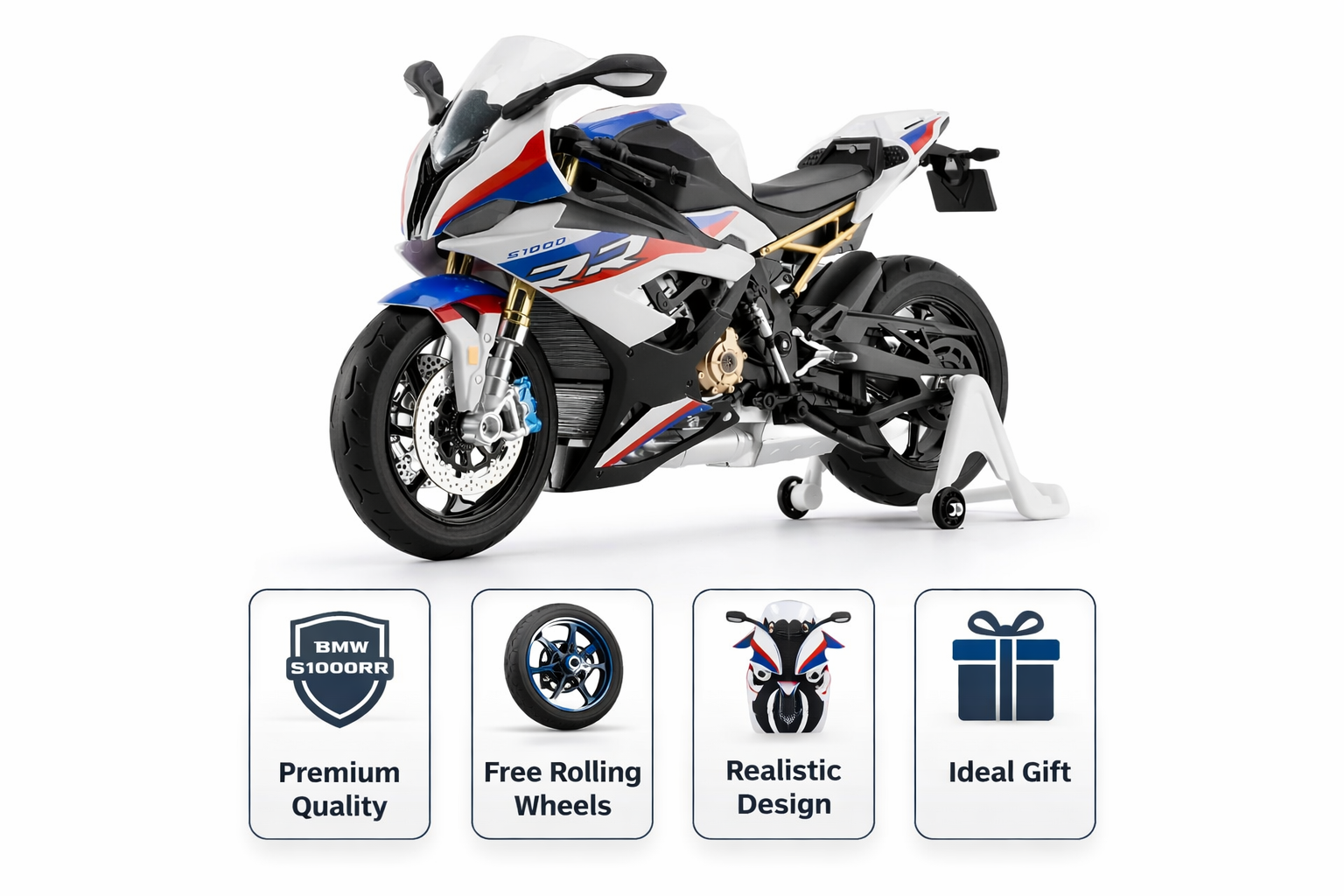 Realistic Design: Inspired by the BMW S1000RR with detailed fairings, sporty graphics, and authentic color scheme