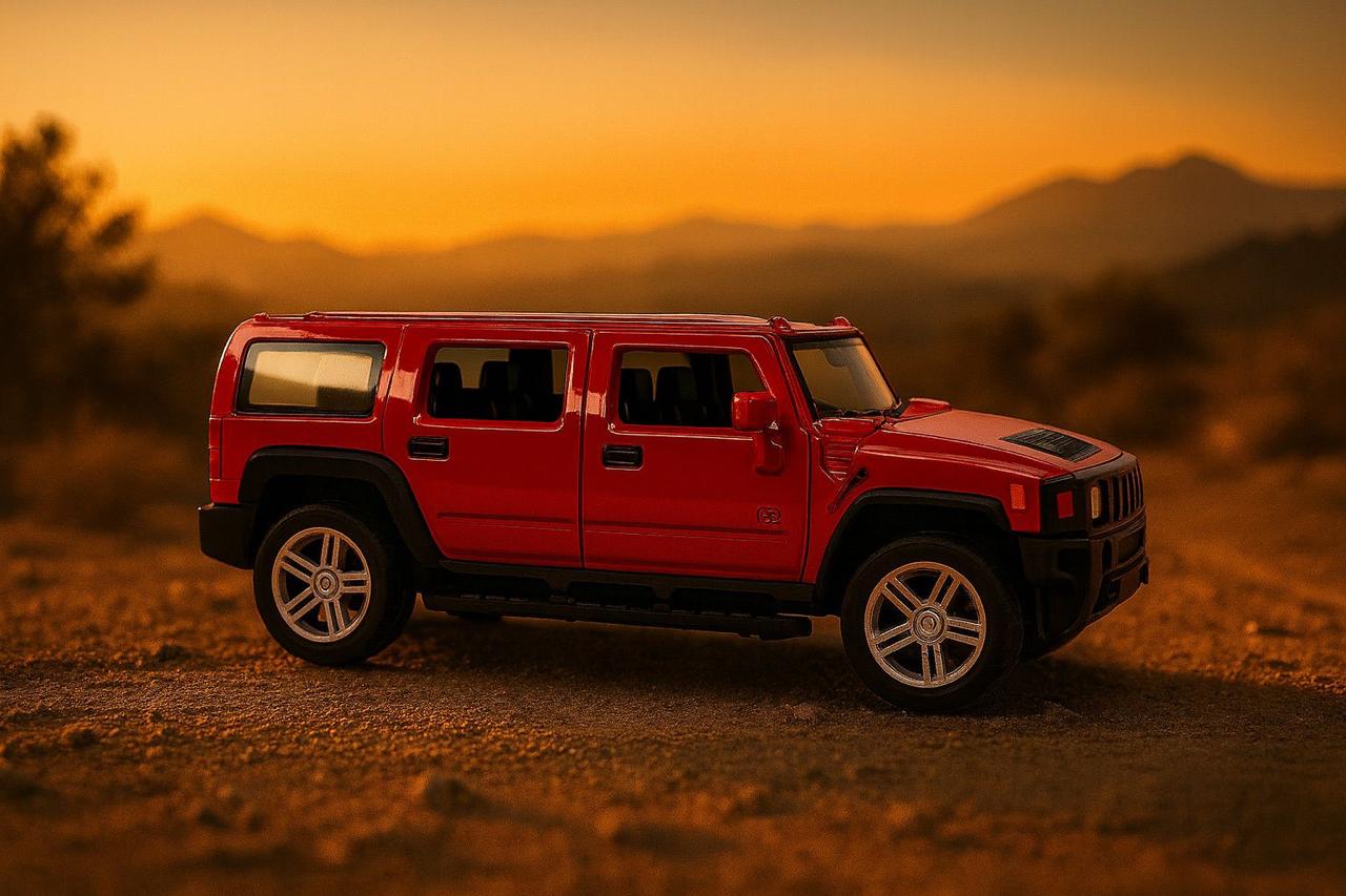 Hit the mini off‑road trails with this bold red die‑cast SUV model inspired by iconic Hummer‑style trucks. The wide stance, boxy body, and chunky wheels capture serious adventure vibes, making it perfect for display on shelves, gaming setups, or as a hero piece in a die‑cast collection. Its sunset‑ready red finish looks especially striking in outdoor photos and Instagram reels.